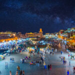 After breakfast, explore the Dades Valley, including the famous “Monkey Fingers” rock formations. Head to *Tinghir and walk through the majestic Todra Gorges. Continue across desert landscapes and Berber villages to Merzouga. In the late afternoon, ride camels into the Erg Chebbi dunes, enjoy a sunset, then arrive at your desert camp. Enjoy a traditional dinner, Berber music, and stargazing. Overnight in camp.